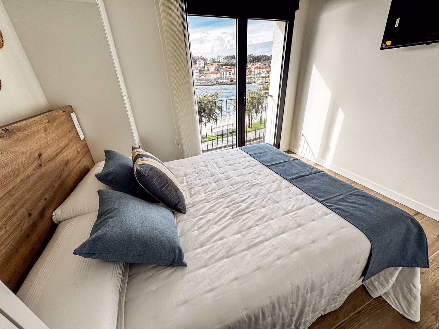 El Apartamento Os Boliños es un refugio con alma atlántica, donde la calma del mar y el confort se encuentran. Desde su habitación principal podrás contemplar las vistas más inspiradoras al puerto y a la Ría de Camariñas.